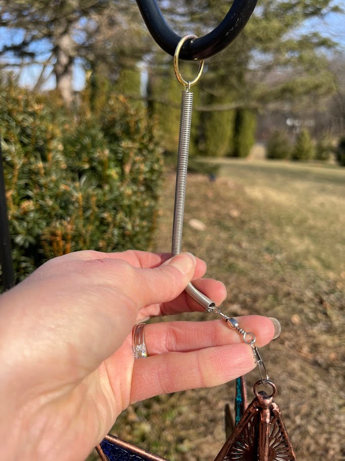- Measures: 15" h x 8" w including 6.5" hanging spring