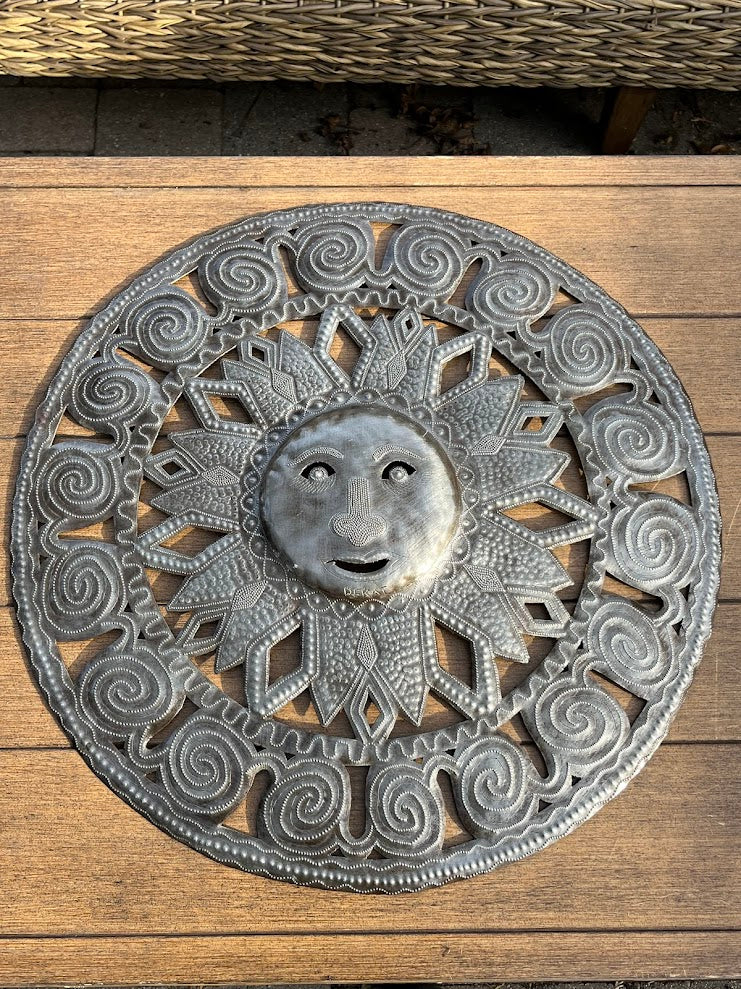 A Protective coating has been applied, however it may weather and oxidize if hung outdoors over time and should be sprayed annually with a clear coat