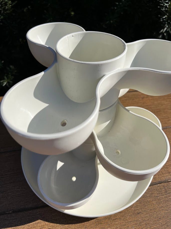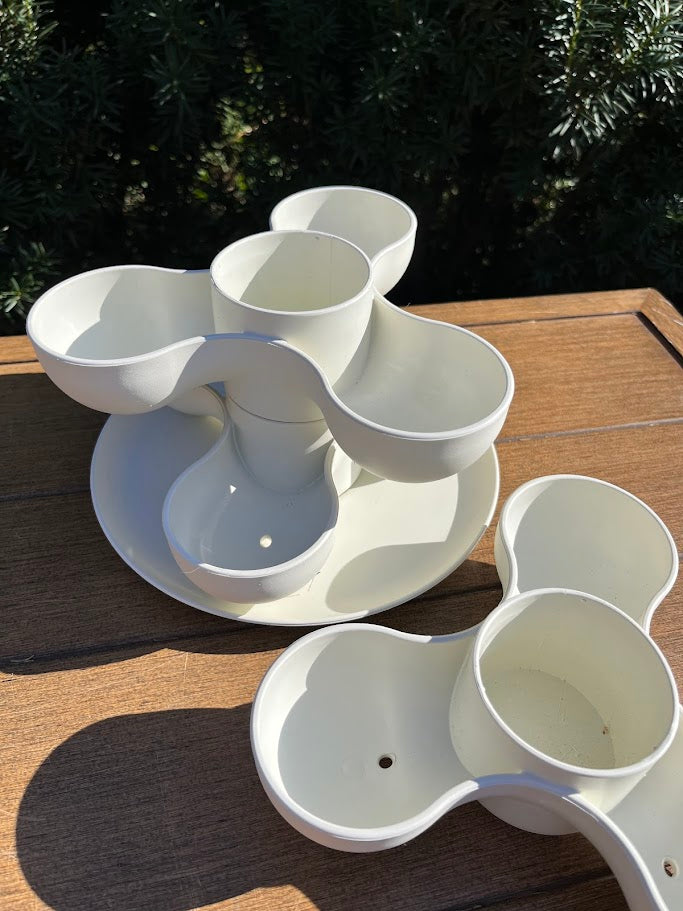 Small tiered planter includes 3 detachable planting layers and a saucer to protect surfaces