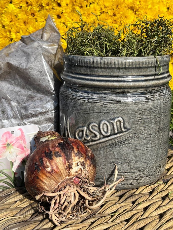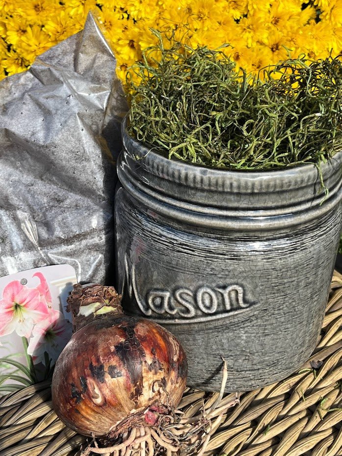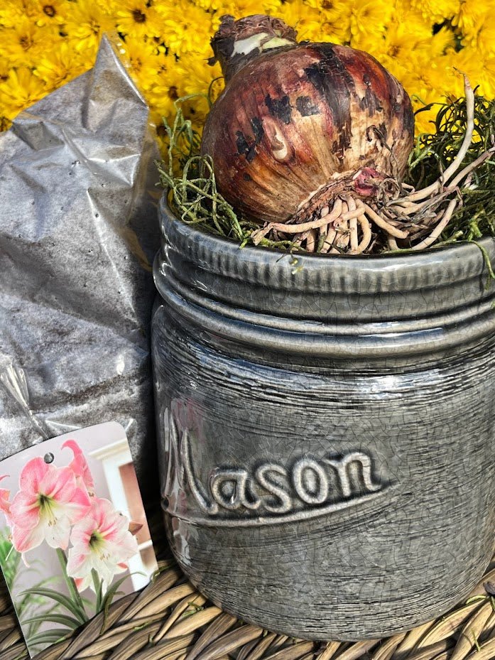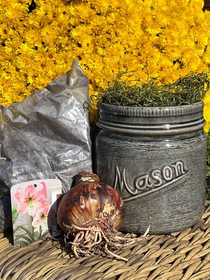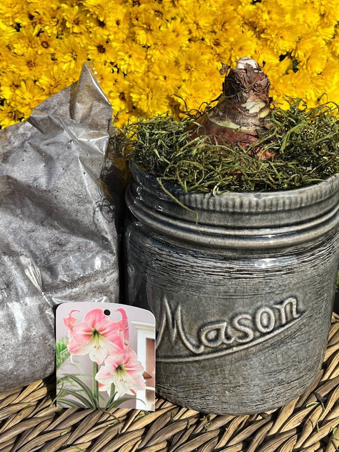 Amaryllis Grow Kit - Mason Jar Grey Planter