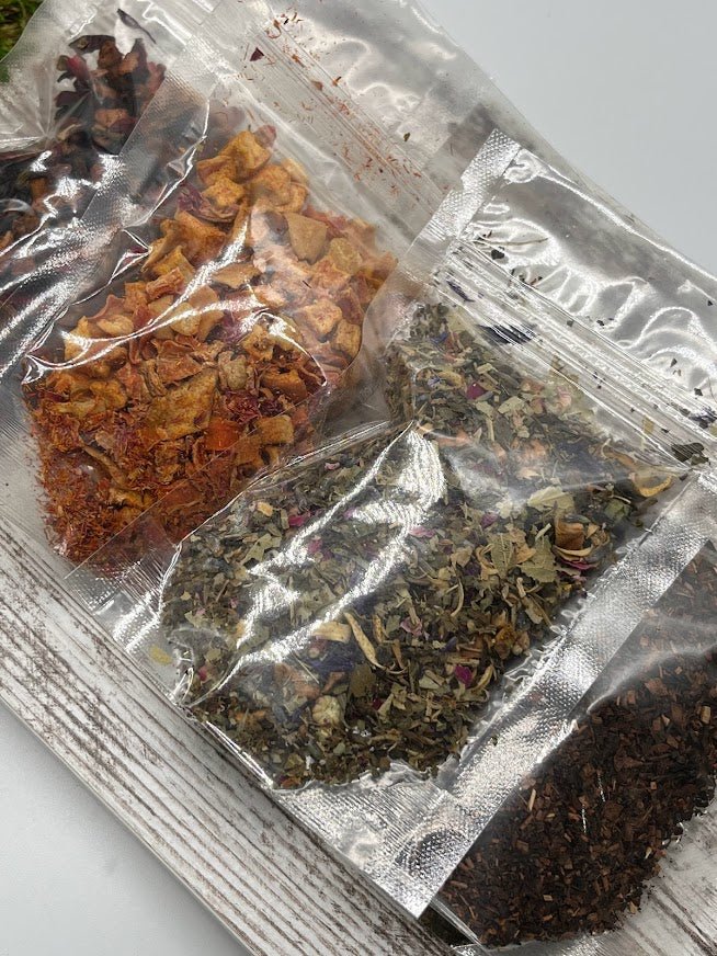 Choose Green or Black if you want to mix some caffeine with your Herbals. Choose Rooibos or Honeybush (both caffeine free) if you want to add more "Tea Depth" to your Herbals.