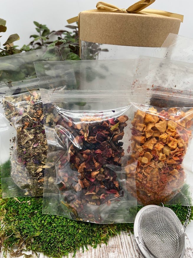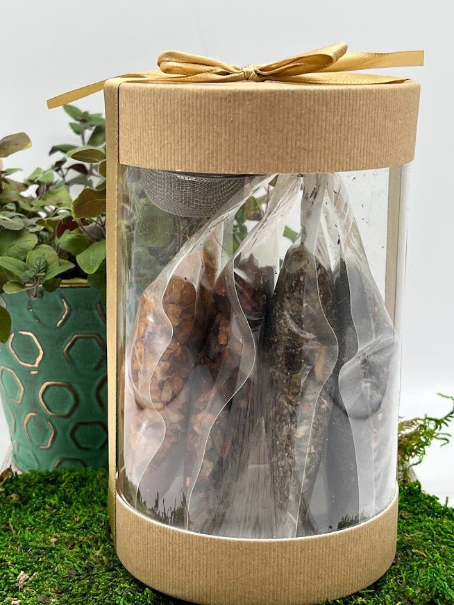 Comes with 4 different varieties of tea + Stainless Steel Tea Ball