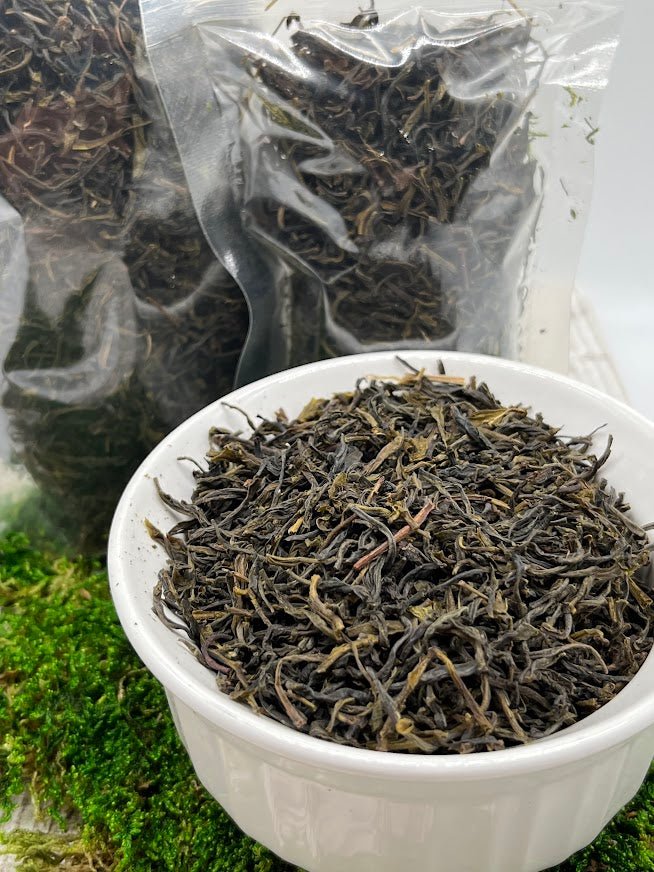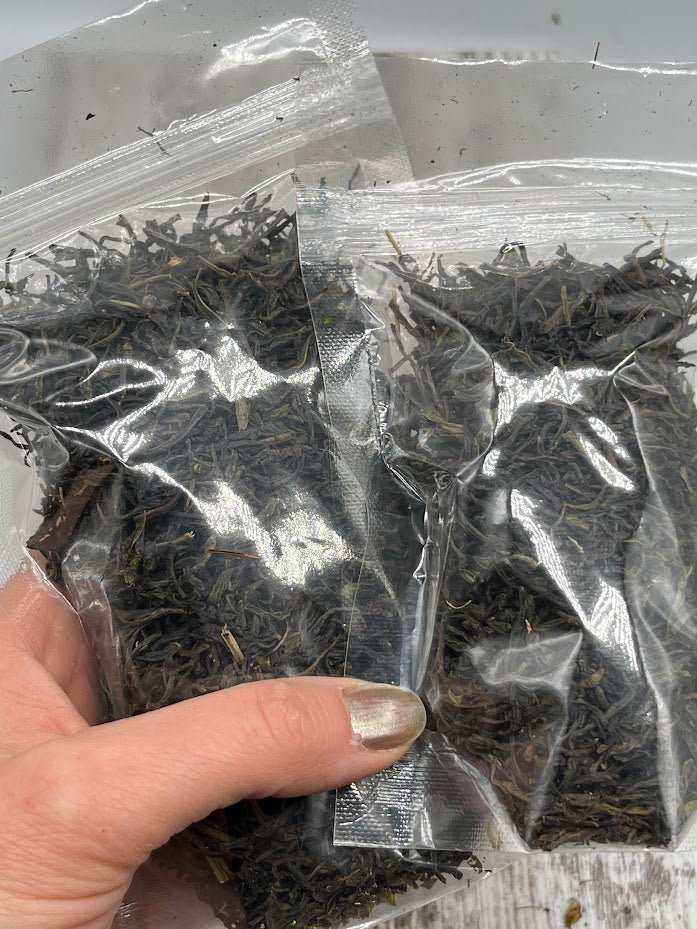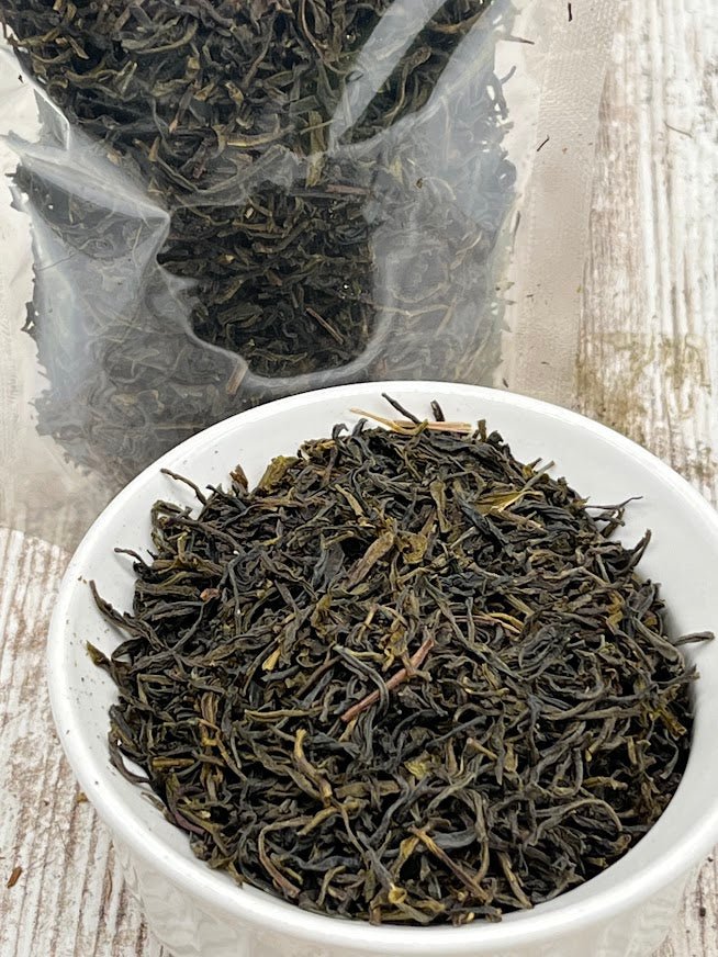Great to drink straight. Brews a bright green tea that is Flowery and Sweet with a Fresh taste. Long needle-like leaves.