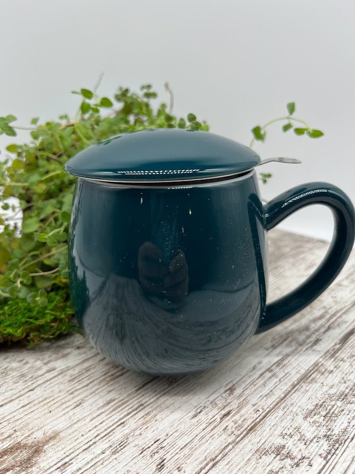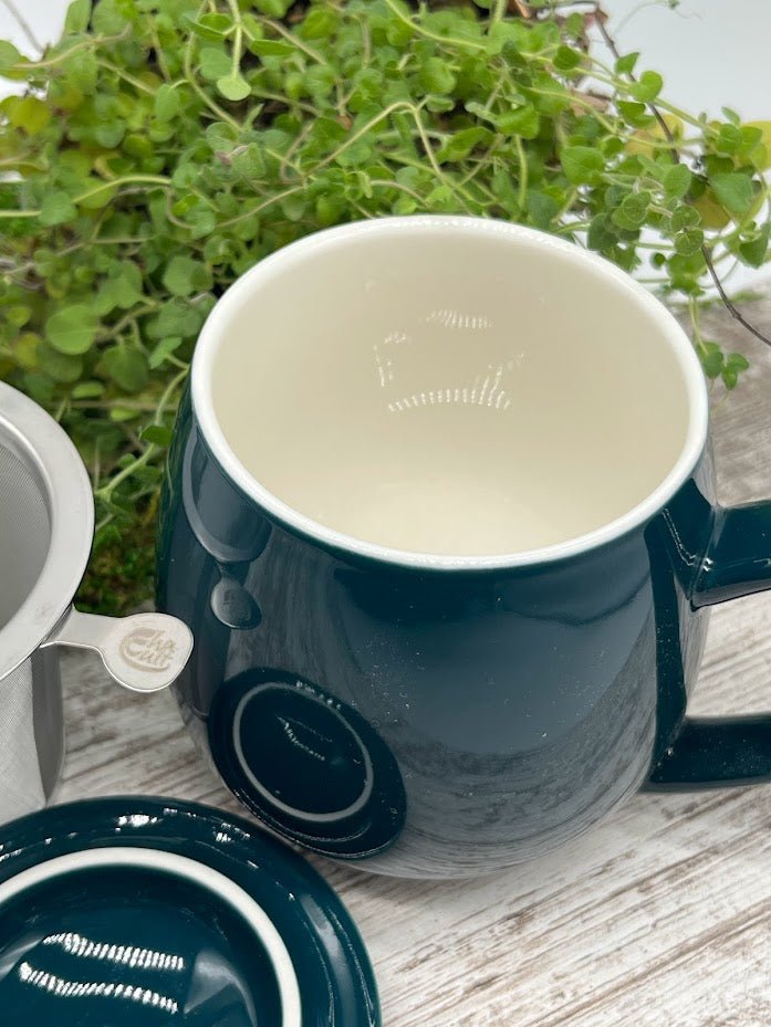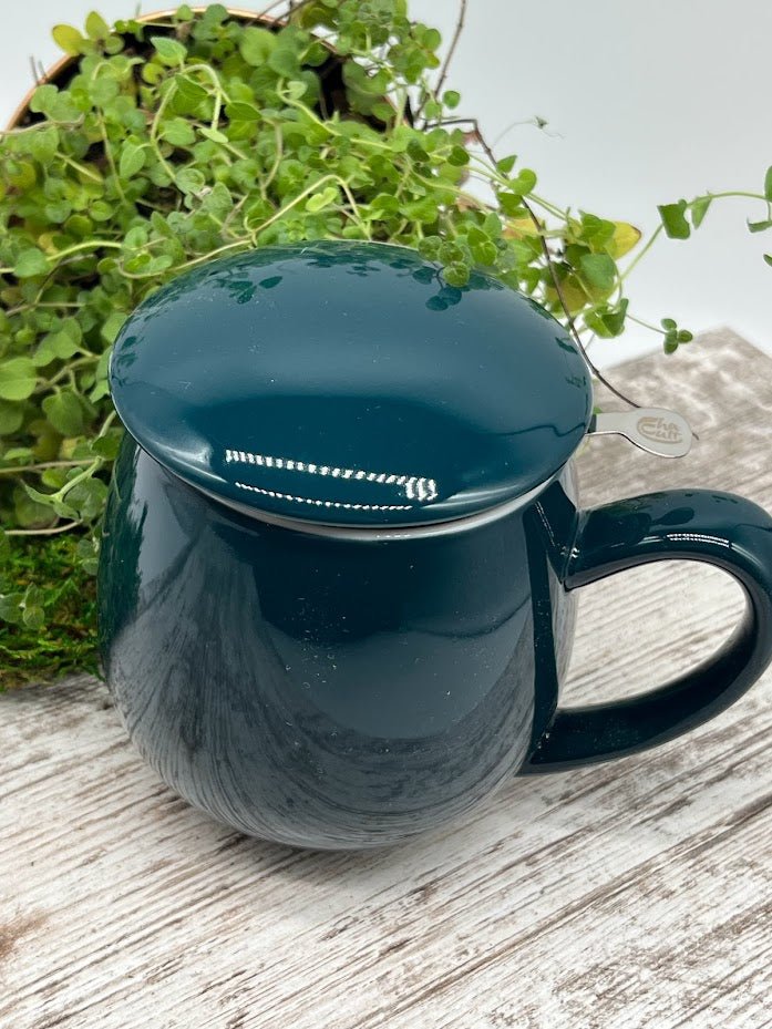 Porcelain Mug with Removable Stainless Steel Brewing Basket & Lid